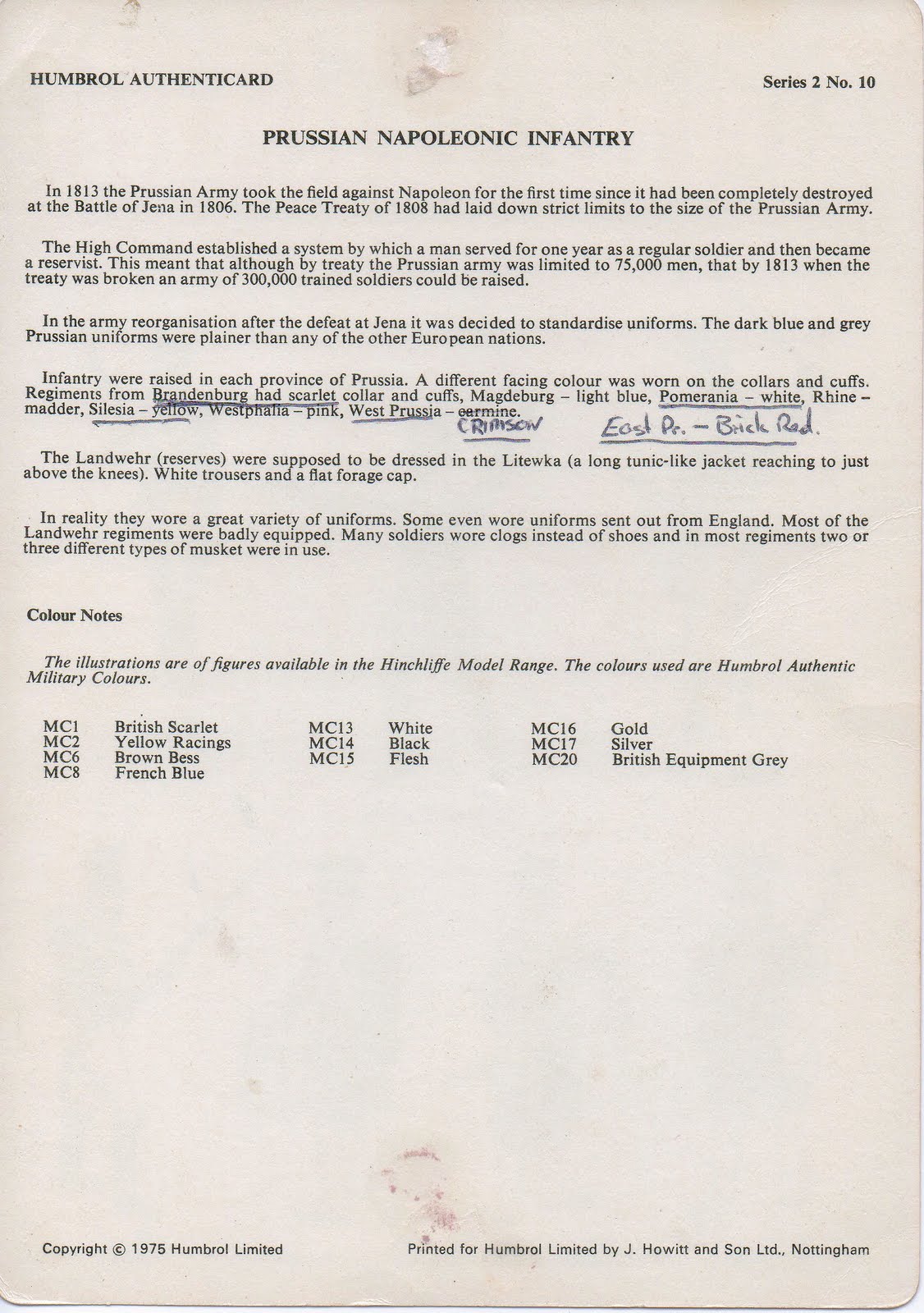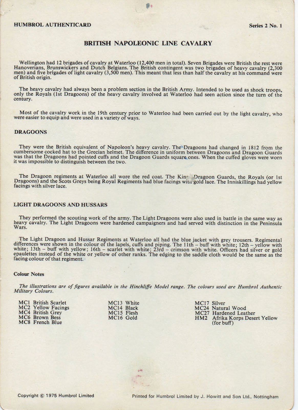 In 1975 Humbrol Limited, then a divison of Borden (UK) Limited, released the first in a series of modellers reference library card entitled Authenticard.