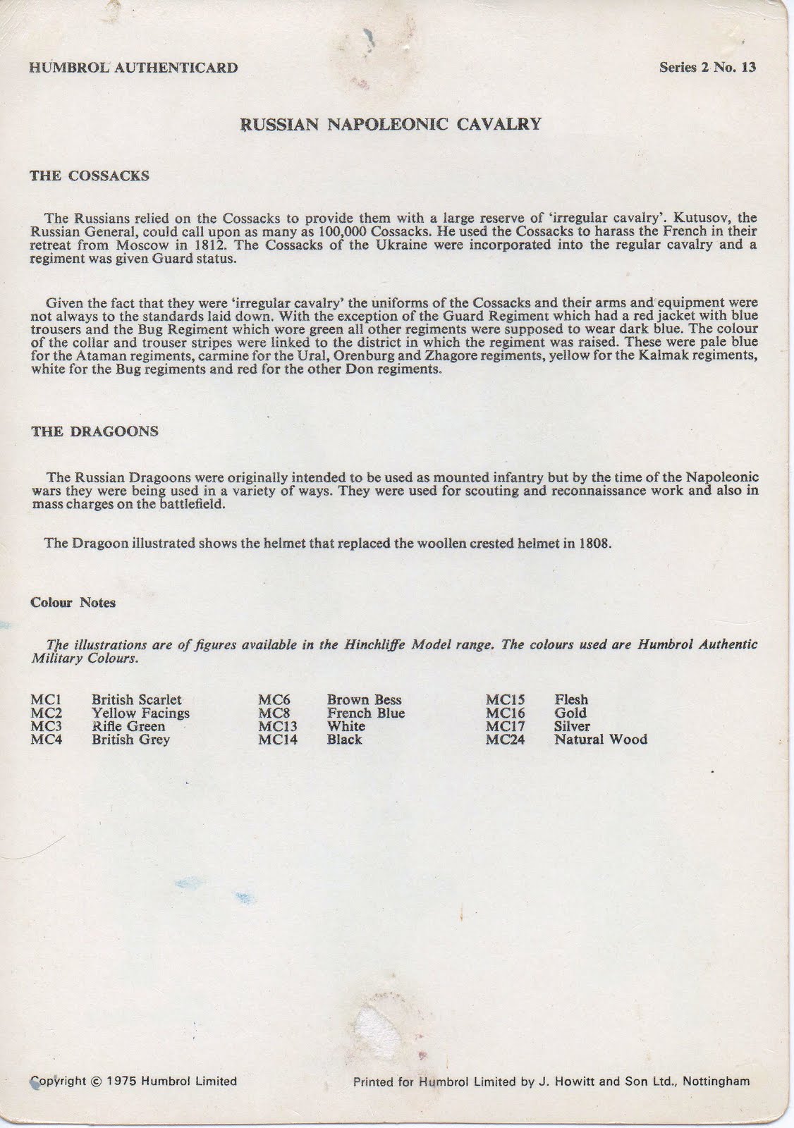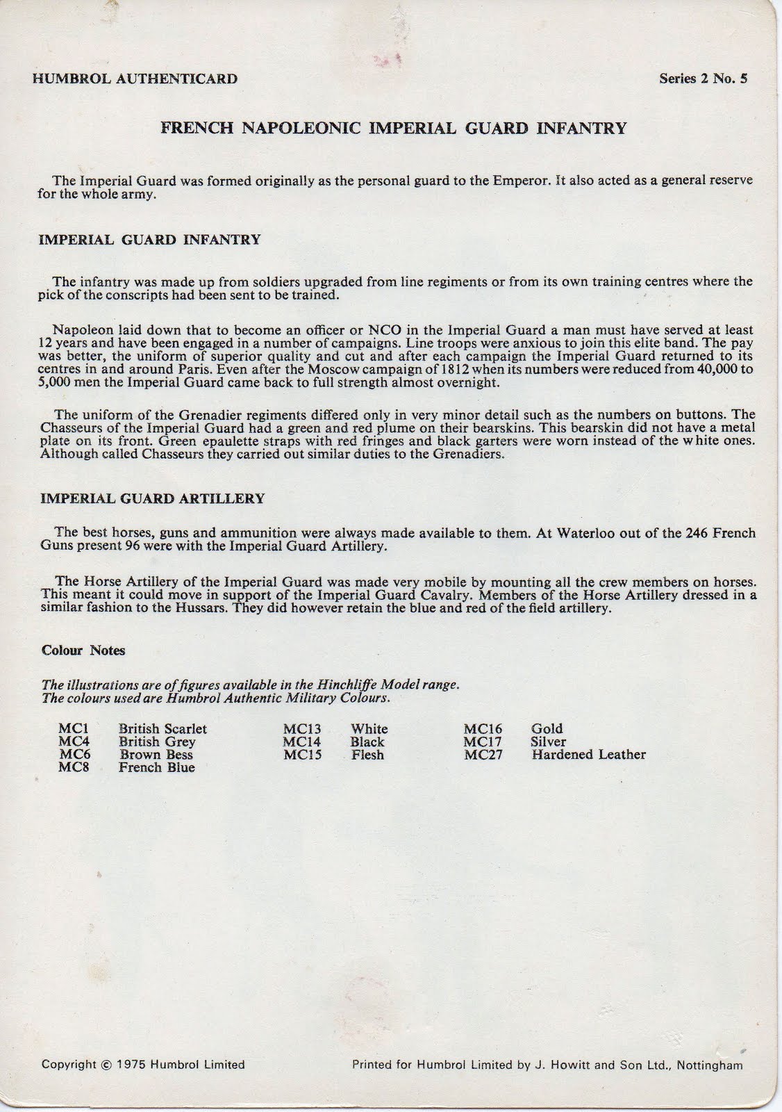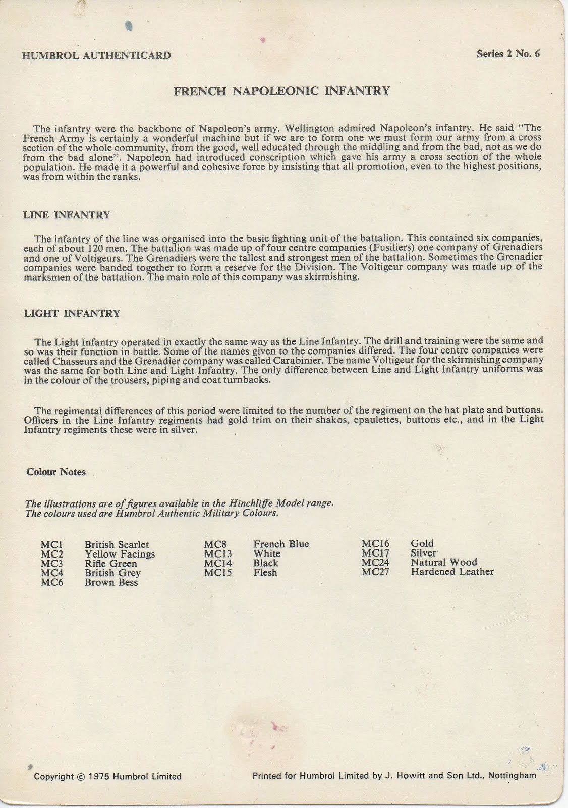 Series 2 was a collection of 14 cards for the Napoleonic figures.