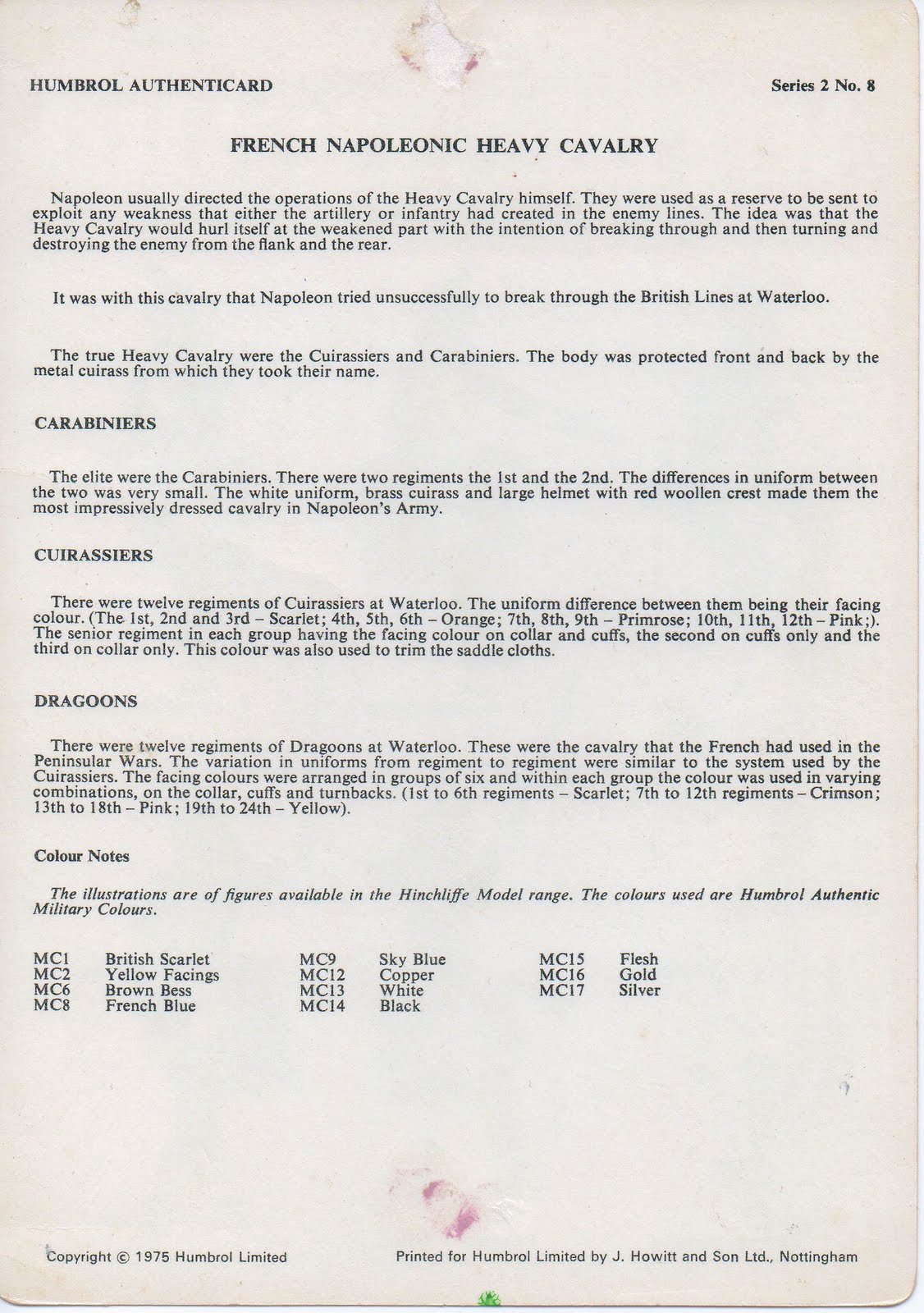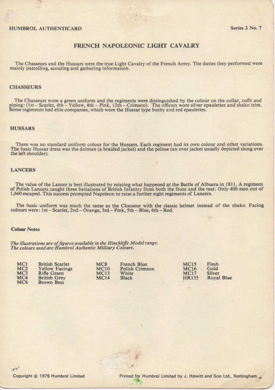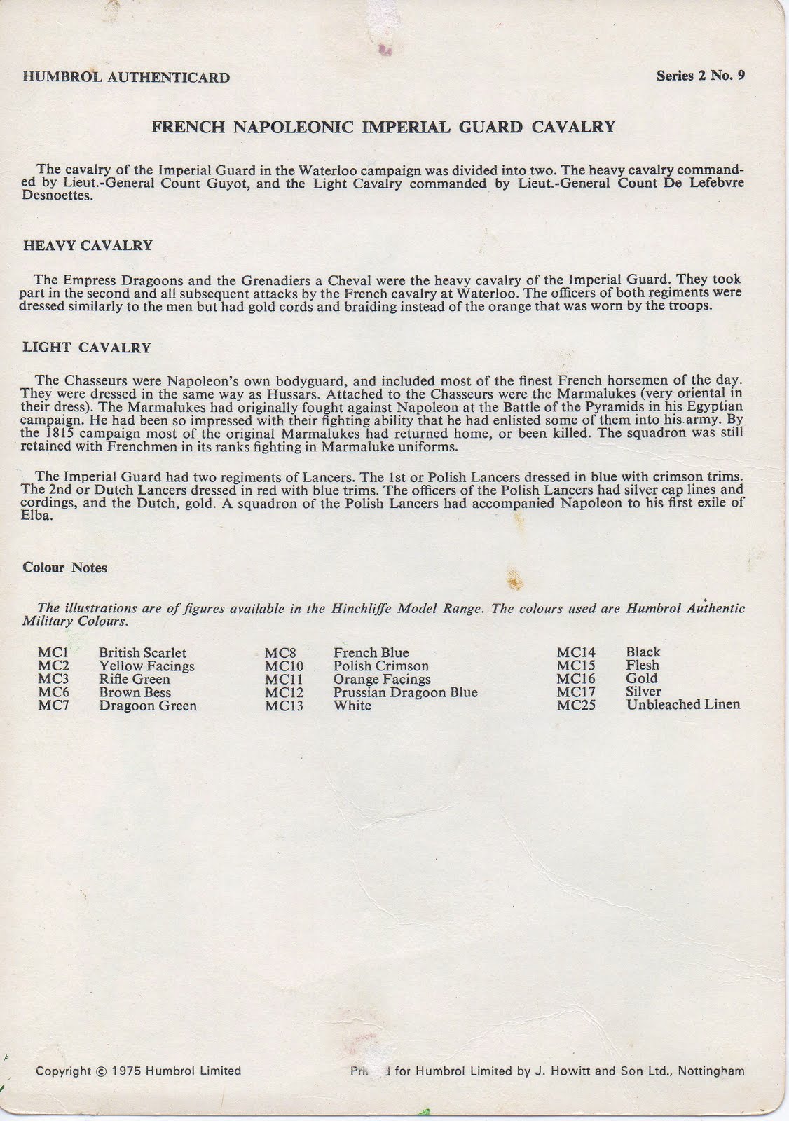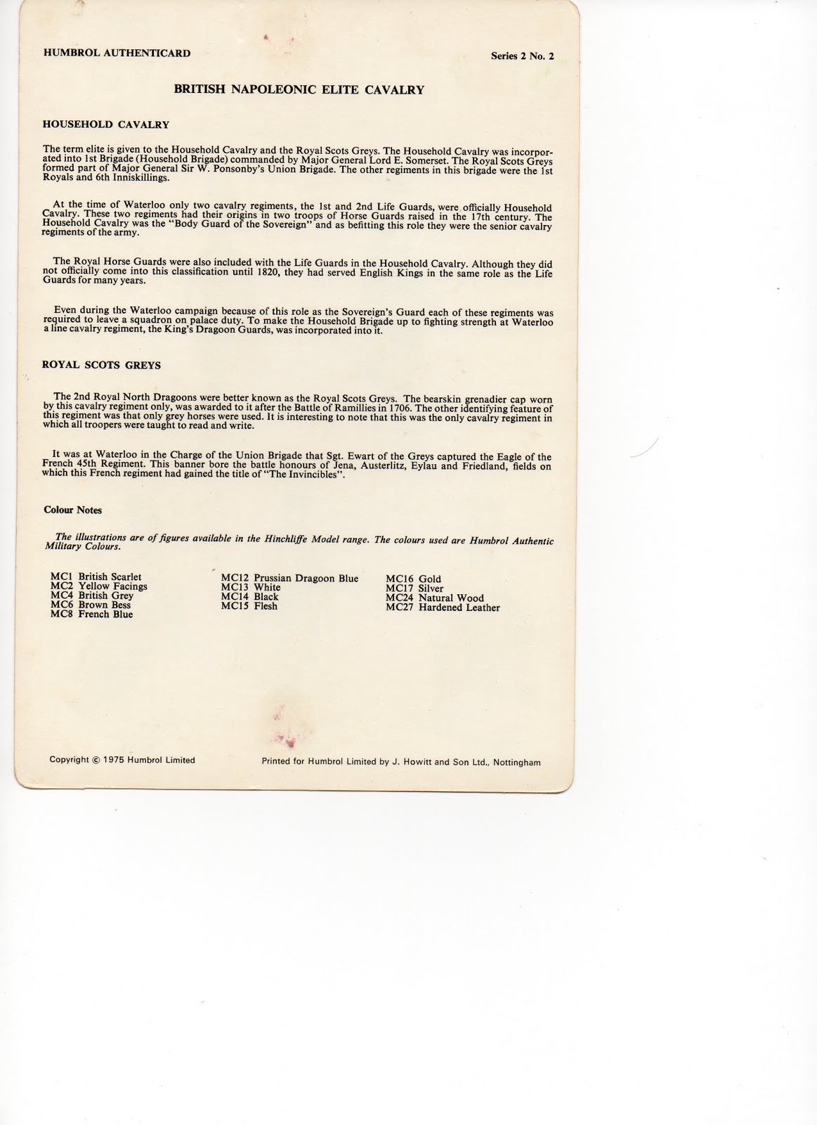 Series 2 was a collection of 14 cards for the Napoleonic figures.